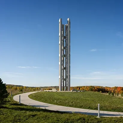 What once was a field is now a place of honor. Remember the passengers and crew of Flight 93 on this trip to the memorial. Walk along memory trails and learn about the heroic actions of that fateful day. Upon entering the park, visitors first see the 93-foot-tall Tower of Voices that introduces the memorial theme. The Tower of Voices features 40 tuned, wind-activated chimes that serve as a long-lasting remembrance of the brave voices of the 40 passengers and crew members.